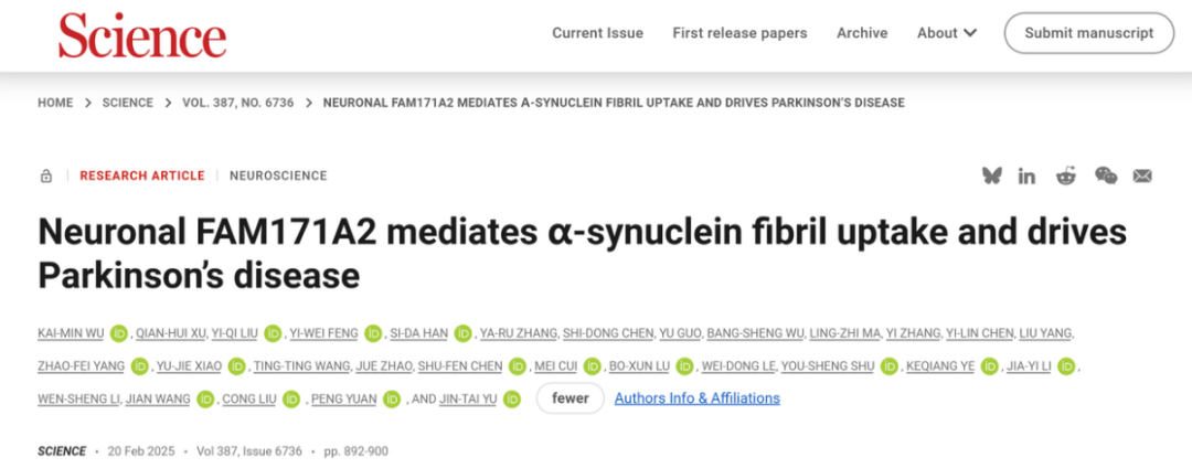 近期,國家神經(jīng)疾病醫(yī)學(xué)中心、腦功能與腦疾病全國重點實驗室、復(fù)旦大學(xué)附屬華山醫(yī)院郁金泰團隊發(fā)表于《Science》雜志的原創(chuàng)性成果,首次發(fā)現(xiàn)帕金森病全新治療靶點FAM171A2,揭示了FAM171A2作為神經(jīng)元膜受體在病理性α-syn傳播中的關(guān)鍵作用:通過特定內(nèi)吞途徑介導(dǎo)α-syn纖維內(nèi)吞的機制,還發(fā)現(xiàn)潛在抑制劑Bemcentinib,為帕金森病的治療提供了重要的理論依據(jù)和潛在干預(yù)靶點。