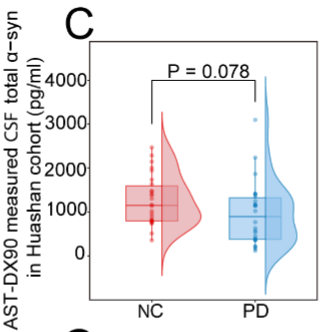 在本研究中,Dx-90平臺為揭示PD病理機制提供了重要支持。基于單分子免疫檢測技術(shù)檢測腦脊液(CSF)中的總α-syn水平變化:結(jié)果顯示PD患者CSF中總α-syn水平降低,這可能反映了腦內(nèi)α-syn聚集的增加。